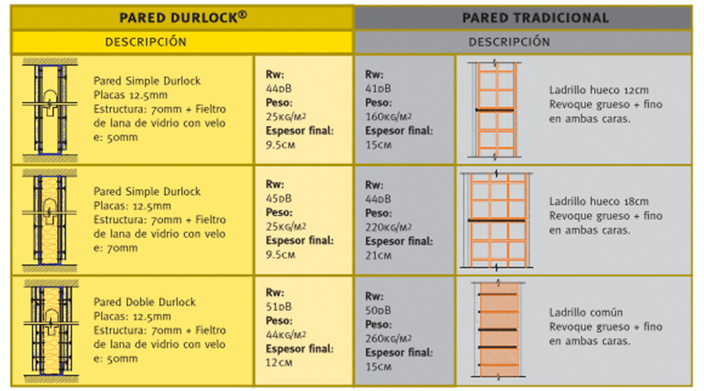 El Sistema de Construccion en Seco asegura optimos resultados acusticos, con una versatilidad que permite un mayor control del ruido en sus diversas caracteristicas. Las paredes construidas con Placa de Yeso y Lana de vidrio Durlock permiten lograr un mejor aislamiento acustico a ruidos aereos que el obtenido con tecnicas constructivas tradicionales, con un peso considerablemente menor, mayor flexibilidad de diseño y menores tiempos de construccion.