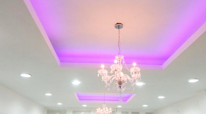 La garganta difusa se compone de un fondo en donde se esconde la luz que proyecta una luz hacia arriba y se compone de un fondo hacia atrás de 20cm por un alto de 30cm acompañado con un frentin de 10cm de alto.