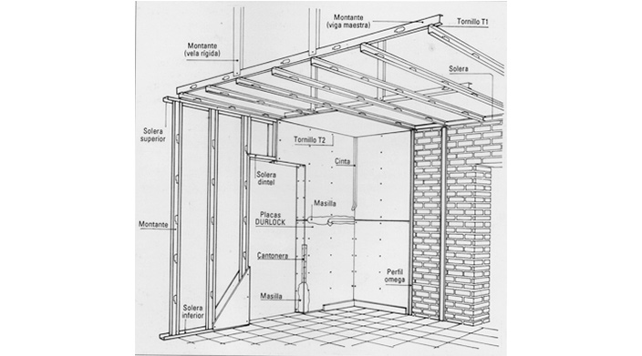 necesarios en aristas y juntas de trabajo, utilizando tornillos autorroscantes T2 punta aguja, colocados con una separación de 15cm.