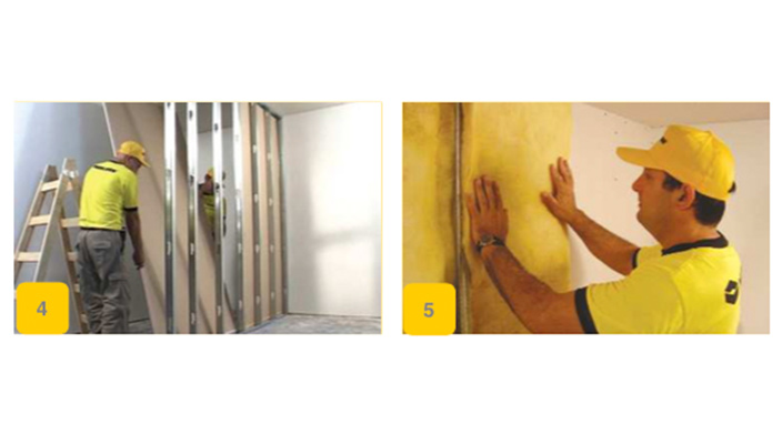 La estructura de la pared se realiza utilizando perfiles tipo Solera de 70mm y Montante de 69mm. Los perfiles Montantes podrán colocarse con una separación de 0,40m (para emplacado vertical) ó 0,48m (para emplacado horizontal).