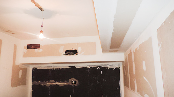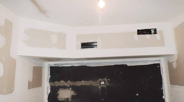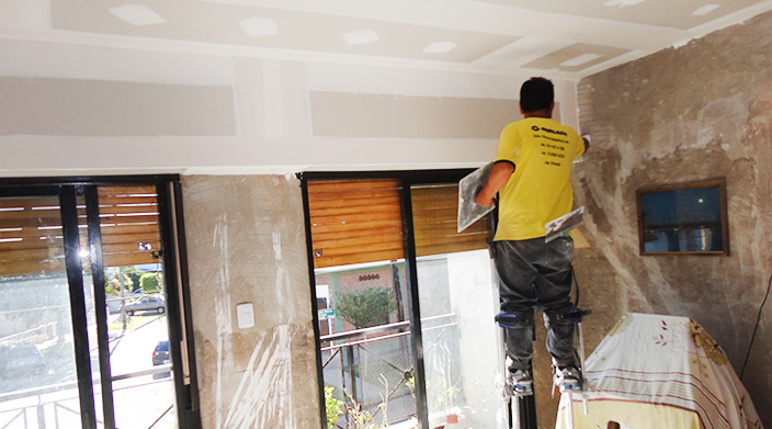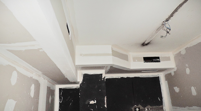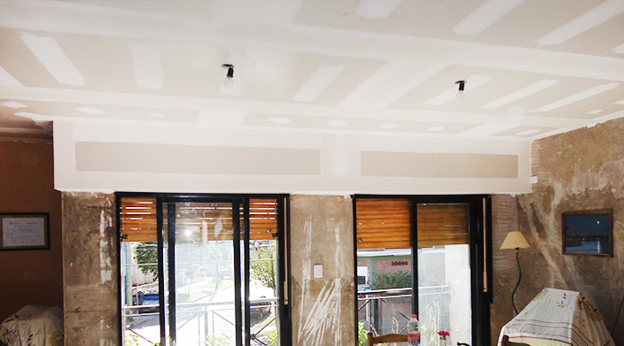 La amplia versatilidad que tiene el sistema durlock también nos permite realizar taparrollos para esconder los ejes de las persianas el cual también sirve para ocultar la instalación de los caños del split del aire acondicionado.